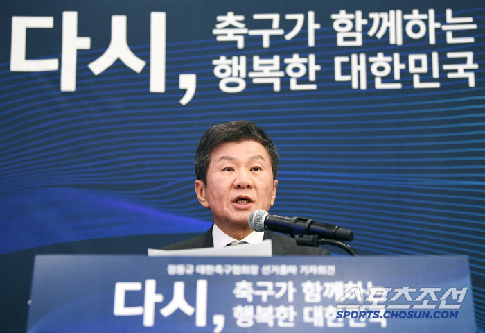 정 회장은 지난달 28일 4선 연임에 도전하기로 결정했다. 그는 2013년 KFA 수장에 올랐다. 2016년 '만장일치' 재선에 성공했고, 2021년 단독 입후보해 무투표로 3선 고지에 올랐다.