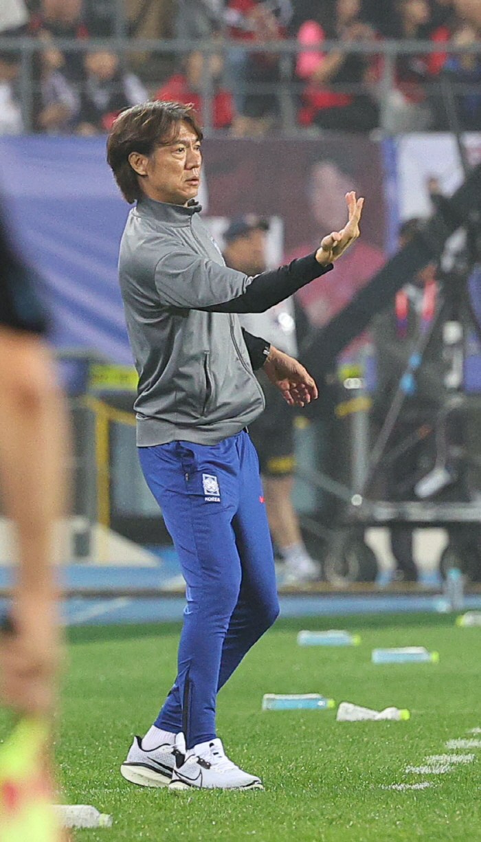 지난해 7월, 10년 만에 국가대표팀 사령탑으로 돌아온 홍 감독은 6경기를 지휘했고, 패전은 없다. 대한민국은 B조에서 승점 14점(4승2무)으로 1위에 올라있다. 2위는 승점 11점의 이라크(3승2무1패), 3위는 승점 9점의 요르단(2승3무1패)이다. 이제 4경기가 남았다.