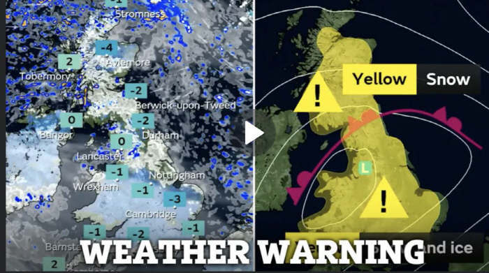 기상청은 공식 성명을 통해 "눈이 지속적으로 국지적으로 더 많이 내릴 가능성이 있다. 눈뿐만 아니라 영하의 기온에서 비가 내리더라도 위험한 여행조건이 될 가능성이 있다"면서 "대부분의 경보 지역에 3~7㎝의 눈이 내릴 수 있으며 웨일스와 남부 페닌 산맥 고지대에는 국지적으로 15~30㎝의 눈이 내릴 수 있다고 예보했다.