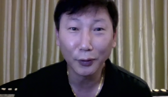 김상식 베트남 축구 대표팀 감독이 화상 기자회견을 통해 우승 소감을 밝히고 있다. 사진=화상 기자회견 캡처