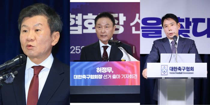 제55대 KFA 회장 선거에는 정몽규 현 회장이 4선 도전에 나선 가운데 신문선 명지대 기록정보과학전문대학원 스포츠기록분석학과 초빙교수와 허정무 전 대전하나시티즌 이사장이 대항마로 뛰어들었다.