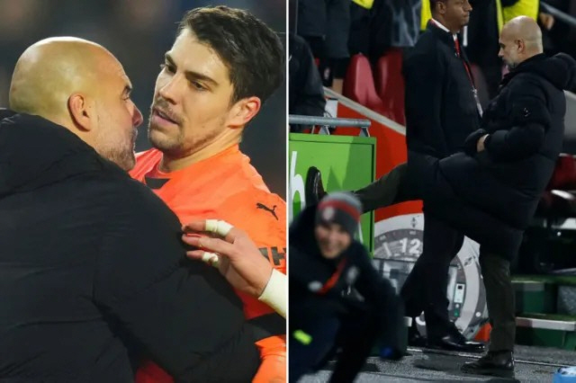 과르디올라 감독은 동점골을 허용한 후 지테크 A보드를 발로 차면 분통을 터트리는 장면이 포착됐다. 경기 종료 후에는 골키퍼 스테판 오르테가의 면전에 대고 소리를 지르며 몰아세운 후 거칠게 껴안기도 했다.