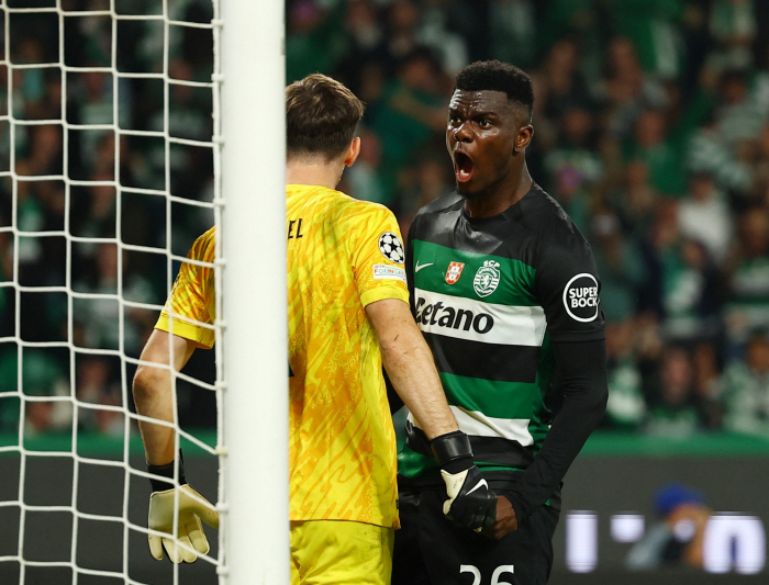 Soccer Football - Champions League - Sporting CP v Manchester City - Estadio Jose Alvalade, Lisbon, Portugal - November 5, 2024 Sporting CP's Ousmane Diomande celebrates after Manchester City's Erling Haaland misses from the penalty spot Action Images via Reuters/Andrew Boyers