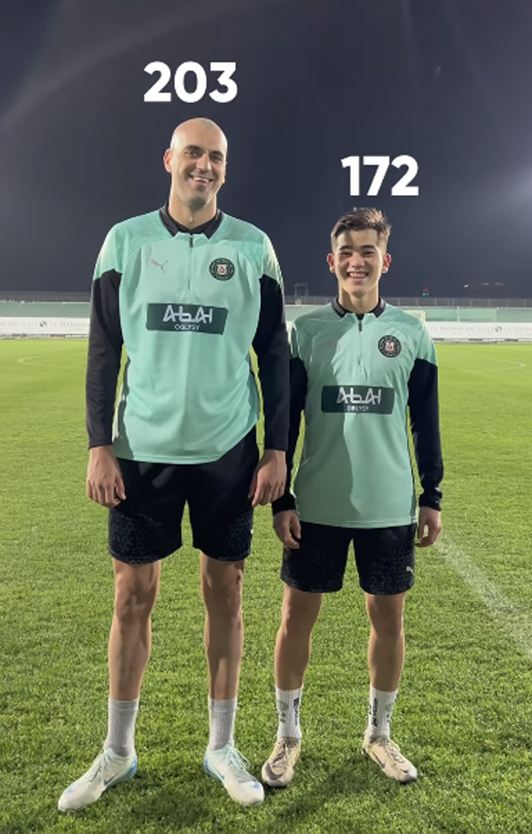 뮬리치의 큰 키는 엘리마이에서도 주목받고 있다. 엘리마이는 지난 15일 공식 SNS를 통해 뮬리치와 엘리마이 선수들의 키를 비교하는 영상을 올렸다. 1m72짜리 선수와는 한 뼘 이상 차이가 났다. 윤진만 기자 yoonjinman@sportschosun.com