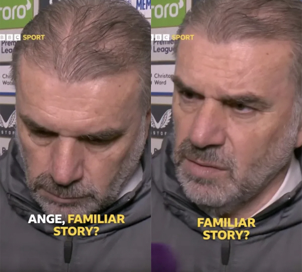 패배에 대한 절망감 때문인지 고개를 숙이고 있던 포스테코글루 감독은 그 순간 고개를 들더니 질문한 리포터를 매섭게 노려봤다. 그리고는 "익숙한 스토리?"라고 되물었다.