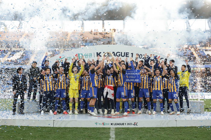 울산문수축구경기장/ K리그1/ 파이널A/ 울산현대축구단 vs 전북현대모터스/ 울산 우승 시상식/ 트로피 세레머니/ 사진 정재훈