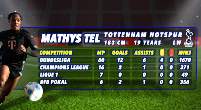 텔은 2024~2025시즌 겨울이적시장 마지막 날인 4일 독일의 명문 바이에른 뮌헨에서 토트넘으로 둥지를 옮겼다. 김민재를 떠나 손흥민의 동료가 됐다. 임대기간은 올 시즌까지지만 완전 영입 옵션이 포함됐다.