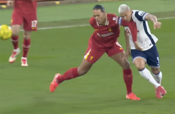 [스포츠조선 윤진만 기자]리버풀 주장 버질 반 다이크가 히샬리송에게 한 행동이 토트넘팬의 감정을 자극했다.