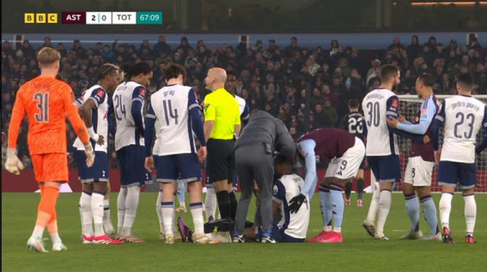 토트넘은 불쾌했다. 가뜩이나 부상으로 베스트11을 꾸리기 힘든 상황에서 단소마저 다치면 수비라인은 '노답'이다. 토트넘은 센터백 자리에 미키 판 더 펜, 크리스티안 로메로에 이어 라두 드라구신도 십자인대 부상으로 '시즌 아웃'됐다.