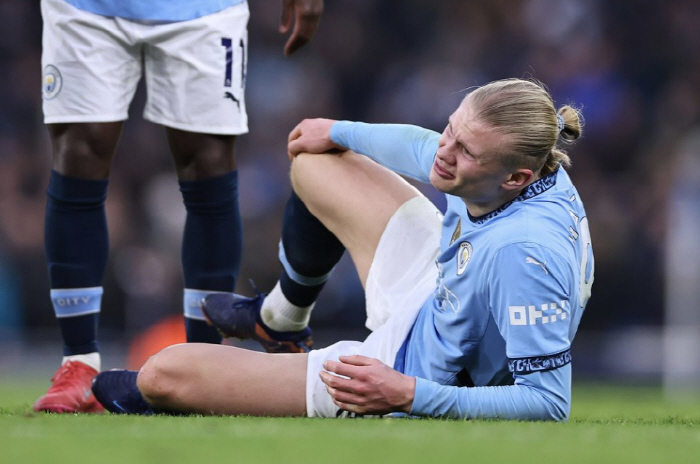 문제가 발생했다. 맨시티가 4-0으로 앞서던 후반 40분이었다. 홀란이 상대와 볼경합 과정에서 무릎을 잡고 쓰러졌다. 경기는 곧바로 중단됐다. 홀란은 더 이상 경기를 소화하지 못했다. 결국 절뚝이며 벤치로 물러났다.