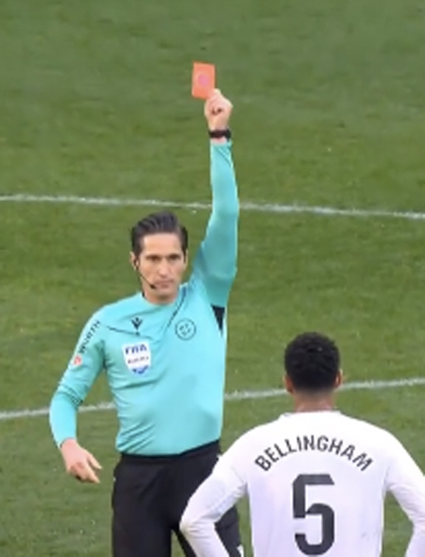 벨링엄은 스페인축구연맹 징계 규정에 따라 주심, 대기심 혹은 스포츠 당국에 모욕적이거나 모욕적인 발언을 할 경우 4~12경기 출장정지 징계 처분을 받을 수 있다.