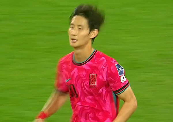 17일 중국 선전에서 열린 태국과의 2025년 U-20 아시안컵 조별리그 D조 2차전 후반 추가시간 2분, 스로인을 준비 중인 신민하. 중계화면