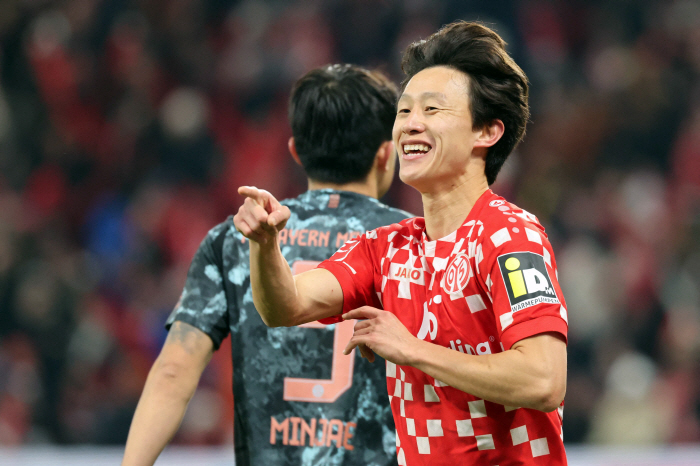 바이에른뮌헨 수비수 김민재는 마인츠에 대해 '정말 뭉쳐서 잘 뛰는 것 같다고 했다. 나도 이런 팀에서 뛰고 싶다'라고 밝힌 바 있다. 지난해 12월 마인츠와의 경기에서 1대2 충격패한 뒤 이날 멀티골을 넣은 이재성에게 건넨 말이다. 윤진만 기자 yoonjinman@sportschosun.com