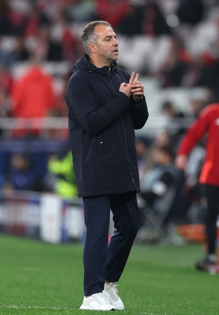 Barcelona's German coach Hans-Dieter Flick gestures on the touchline during the UEFA Champions League Round of 16 first leg football match between SL Benfica and FC Barcelona at Estadio da Luz stadium in Lisbon on March 5, 2025. (Photo by FILIPE AMORIM / AFP)