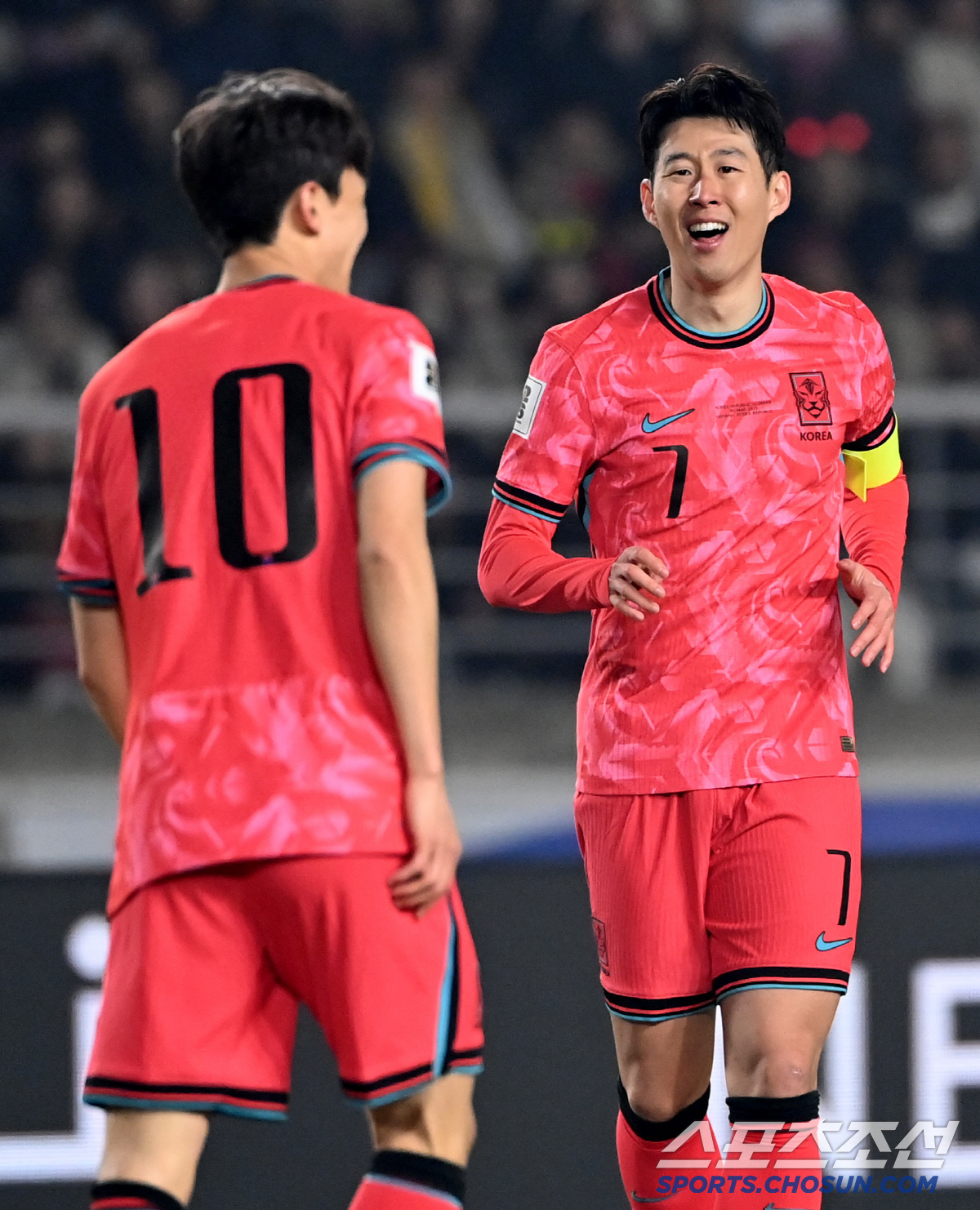 20일 고양종합운동장에서 열린 대한민국과 오만의 2026 북중미 월드컵 아시아지역 3차 예선, 손흥민과 이재성이 슛팅 찬스를 놓친 후 아쉬워하고 있다. 고양=허상욱 기자wook@sportschosun.com/2025.03.20/