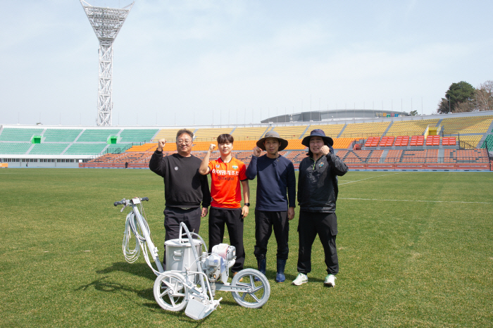 한편, 강원FC의 2025시즌 영입 오피셜 콘셉트는 'Thanks to'다. 구단을 든든히 지원하는 단체와 기업, 조직 등을 조명하며 감사의 의미를 더하고 있다. 정인증의 오피셜 사진 촬영은 강릉시 체육시설사업소 직원과 강릉종합운동장에서 함께했다. 최국헌 주사, 강두경 주사, 김성윤 주사는 탁월한 잔디 관리로 강원FC 경기력 향상에 이바지했다. 강릉시는 최상의 잔디 상태를 인정받아 지난해 한국프로축구연맹에서 선정하는 2차, 3차 그린스타디움상을 수상한 바 있다.
