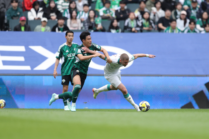 승리의 여신은 전북을 향해 미소 짓는 듯 했다. 후반 42분 중원에서 길게 넘어온 패스가 티아고에 맞고 굴절된 틈을 타 침투한 전진우가 왼발로 골망을 흔들었다. 하지만 대전은 후반 47분 임종은이 아크 정면에서 밀어준 공을 김인균이 전북 골문 오른쪽에서 오른발로 마무리 하면서 동점을 만들었고, 그렇게 경기가 마무리 됐다.