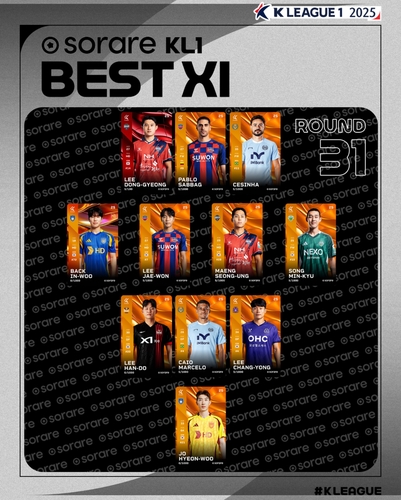 31라운드 베스트 11은 이동경(김천), 싸박(수원FC), 세징야(대구·이상 FW), 백인우(울산), 이재원(수원FC), 맹성웅(김천), 송민규(전북·이상 MF), 이한도(서울), 카이오(대구), 이창용(안양·이상 DF), 조현우(울산·GK)가 이름을 올렸다.