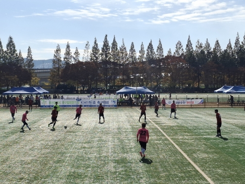 ▲ 대선주조는 16일 부산 기장월드컵빌리지 등지에서 열린 '부산시축구협회장기 및 대선주조배 축구대회'를 후원하는 등 24년째 이 대회를 후원하고 있다고 17일 밝혔다. 이 대회는 연령대별로 청년부, 장년부, 노장부, 실버부, 황금부로 나눠 진행됐다. (부산=연합뉴스)