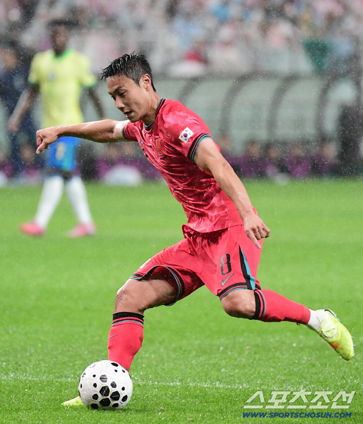 10일 서울월드컵경기장에서 열린 축구대표팀과 브라질의 A매치 평가전. 돌파하는 백승호. 상암=송정헌 기자songs@sportschosun.com/2025.10.10/