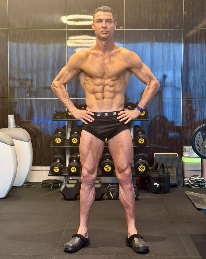 호날두는 23일(한국시각) SNS를 통해 자신의 몸매를 공개했다. 자신이 론칭한 속옷 브랜드 CR7 트렁크만 입은 채 카메라 앞에 포즈를 취한 호날두는 마치 전문 보디빌더처럼 선명한 근육을 드러내면서 혹독한 자기 관리의 성과를 드러냈다.
