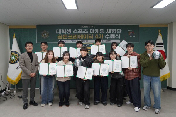 수료식은 29일 김포솔터축구장 내 회의실에서 진행됐다. 골든크리에이터 4기 12명 전원이 참석한 가운데 스포츠 실무자 강연, 우수 수료자 시상, 수료증 전달 및 기념품 증정, 단체사진 순으로 이어졌다.
