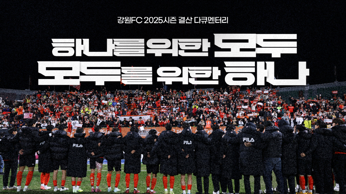 강원FC는 30일 구단 공식 유튜브 채널과 네이버TV를 통해 2025시즌 다큐멘터리 '하나를 위한 모두, 모두를 위한 하나'를 선보였다.