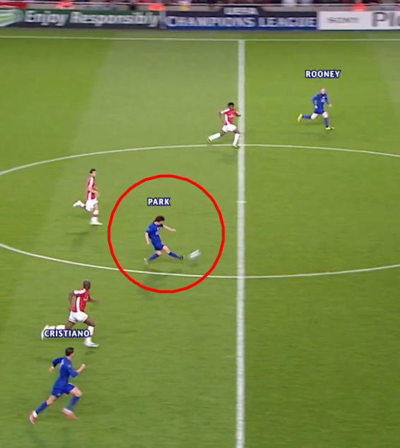 10일(한국시각) 유럽축구연맹(UEFA) 챔피언스리그 공식 사회관계망서비스(SNS)에는 지난 2009년 5월 열린 2008~2009시즌 UEFA 챔피언스리그 4강 2차전 맨유의 3번째 득점 장면이 담겼다. 호날두에서 시작해 박지성과 루니를 거쳐 호날두의 골로 연결되는 전개 장면이다. 역습의 정석으로 불리는 이 장면은 맨유의 전성기 시절을 대표하는 연계로 여러 번 언급됐다. 세 선수 모두 빠른 발로 상대팀 골문을 향해 뛰어가는데 현재 맨유에서는 볼 수 없는 장면이다.