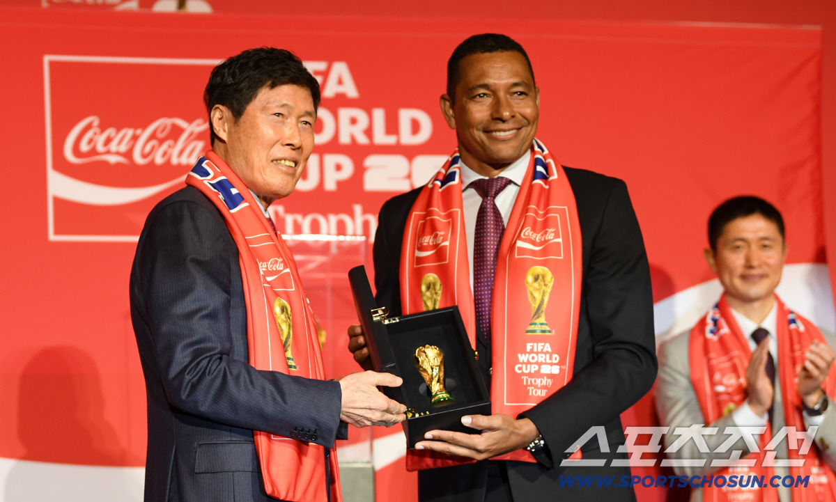 FIFA 월드컵 트로피 투어 미디어 간담회가 16일 서울 용산구 한강로동 CGV용산아이파크몰에서 열렸다. 차범근, 지우베르투 시우바가 포토타임을 갖고 있다. 용산=박재만 기자 pjm@sportschosun.com