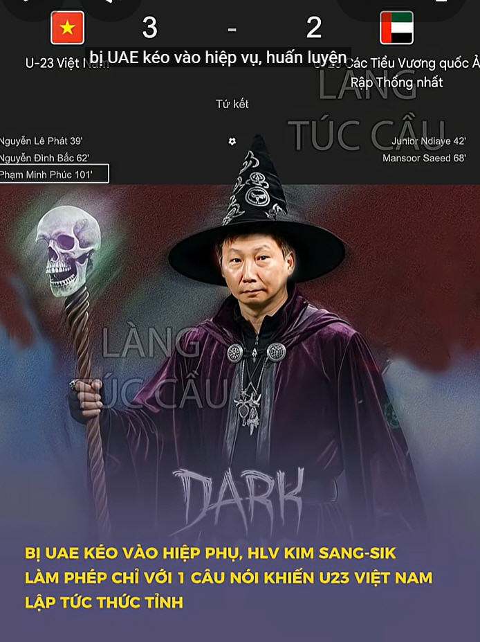2024년 5월 베트남 대표팀 지휘봉을 잡은 김 감독은 지난해 동남아시아 축구선수권(미쓰비시컵), 아세안축구연맹(AFF) U-23 챔피언십, 동남아시안(SEA) 게임까지 3관왕에 오르며 '김상식 매직'을 입증했고, 이번 대회 조별리그에서 요르단(2대0 승), 키르기스스탄(2대1 승),개최국 사우디아라비아(1대0 승)을 줄줄이 돌려세우며 3전승 A조 1위로 8강에 올라 강호 UAE마저 돌려세웠다. 베트남은 전반 39분 교체투입된 응우옌 딘 박의 도움을 받은 응우옌 례 팟이 골망을 흔들며 1-0으로 앞서나갔다. 그러나 3분 뒤 UAE 주니어 은디아예의 헤더 동점골이 터지며 1-1로 전반을 마쳤다. 후반도 접전이었다. 후반 17분 응우옌 딘 박의 백헤더가 골망에 빨려들며 2-1로 앞서나갔고, 후반 23분 만수르 알멘할리의 헤더골로 2-2, 다시 동점이 되며 연장전에 돌입했다. 그러나 체력, 투지에서 베트남이 강했다. 연장 전반 11분 팜 민 푹이 오른발 터닝슛으로 골망을 흔들어 4강행을 결정지었다.