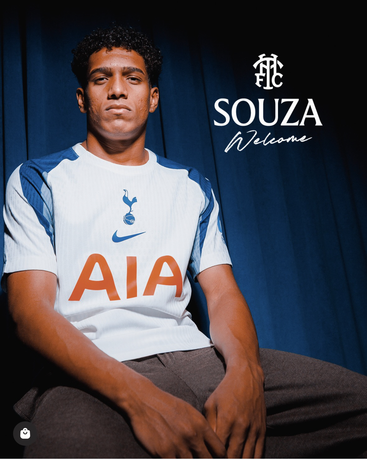 토트넘은 23일(한국시각) 공식 채널을 통해 '브라질 세리에A 소속 산투스와 수자 이적에 대한 합의에 도달했다'고 발표했다. 구체적인 기간을 알리지는 않았지만 '장기계약을 체결했다'고 전했다. 등번호는 38번이다.
