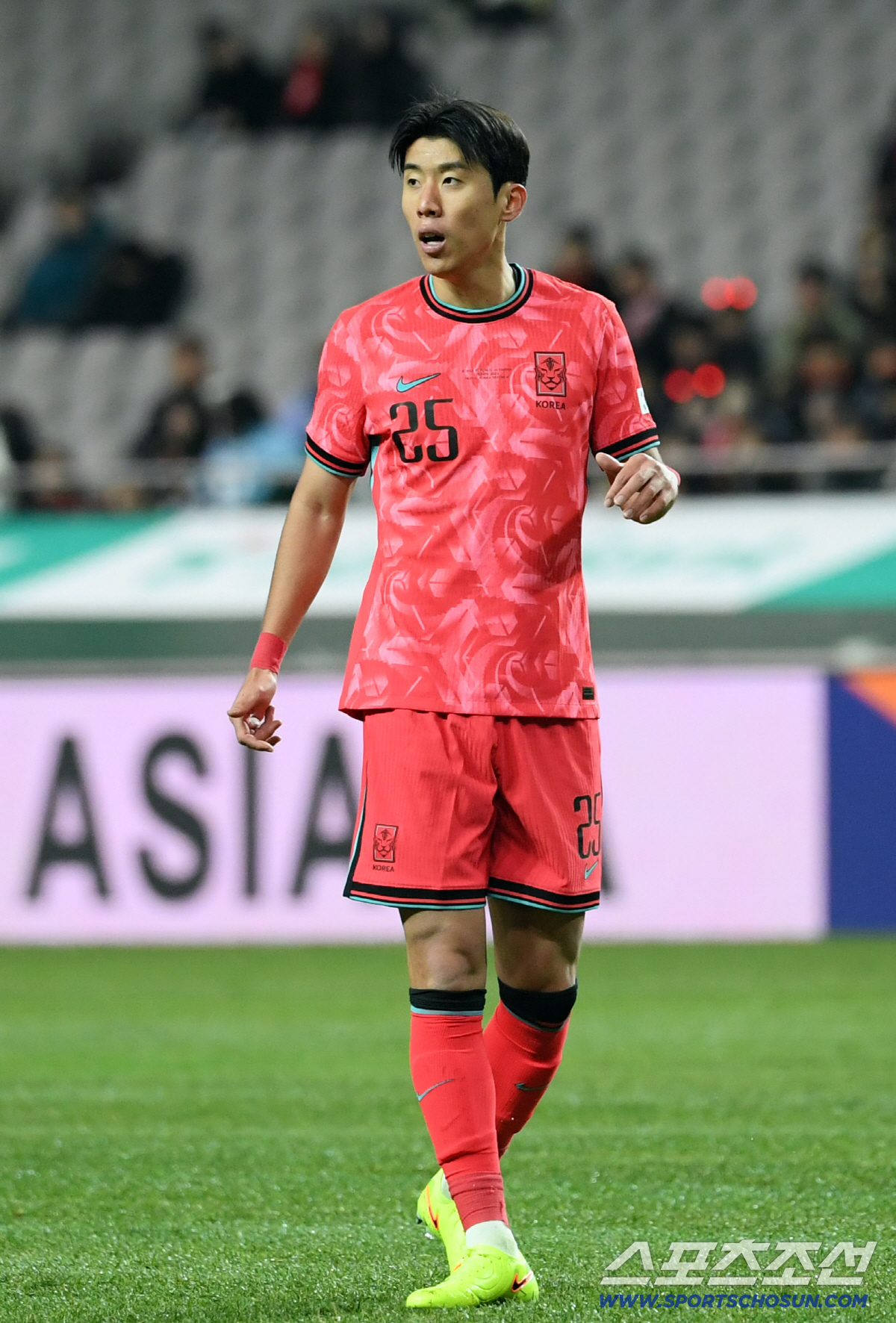 18일 서울월드컵경기장에서 열린 대한민국과 가나의 A매치 평가전. 권혁규가 숨을 고르고 있다. 상암=박재만 기자 pjm@sportschosun.com/2025.11.18/