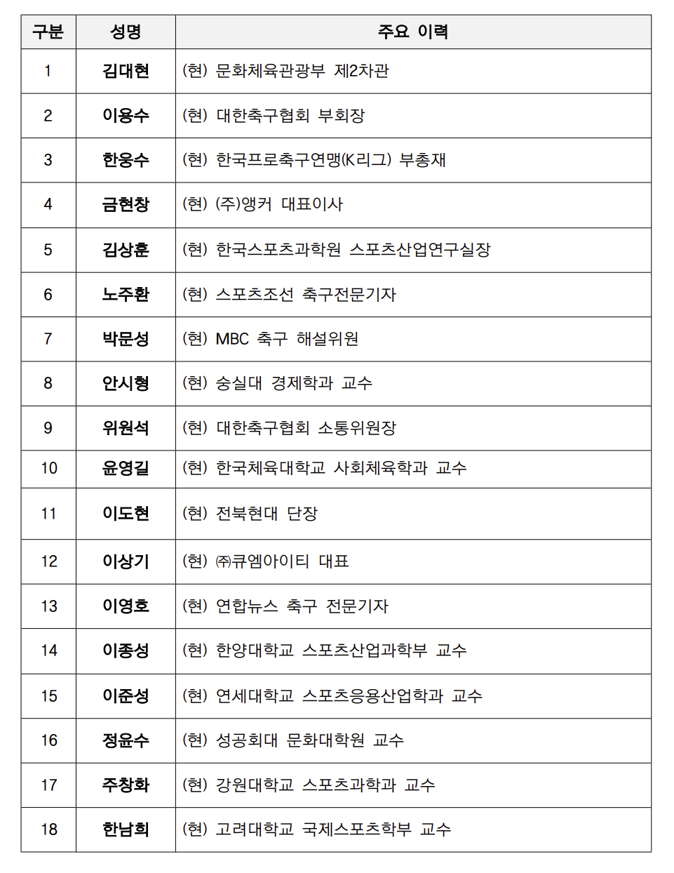 11일 오전 국립현대미술관 서울관에서 열린 이번 위원회는 최근 관중 증가와 리그 외형 확대 등, 가시적 성과에도 불구하고, 경기장 환경 개선과 심판 공정성 강화 등 구조적 과제가 제기됨에 따라 마련됐다. 정부와 축구 전문가들이 머리를 맞대 현장 문제를 진단하고 해법을 모색하는 자리로, 문체부, 대한축구협회, 한국프로축구연맹(이하 K리그), 스포츠산업 및 경기 운영 분야 민간 전문가 등 총 18명이 프로축구의 산업화와 기반 확충, 리그 운영 고도화 등 전 분야를 포괄적으로 논의해 나갈 계획이다.