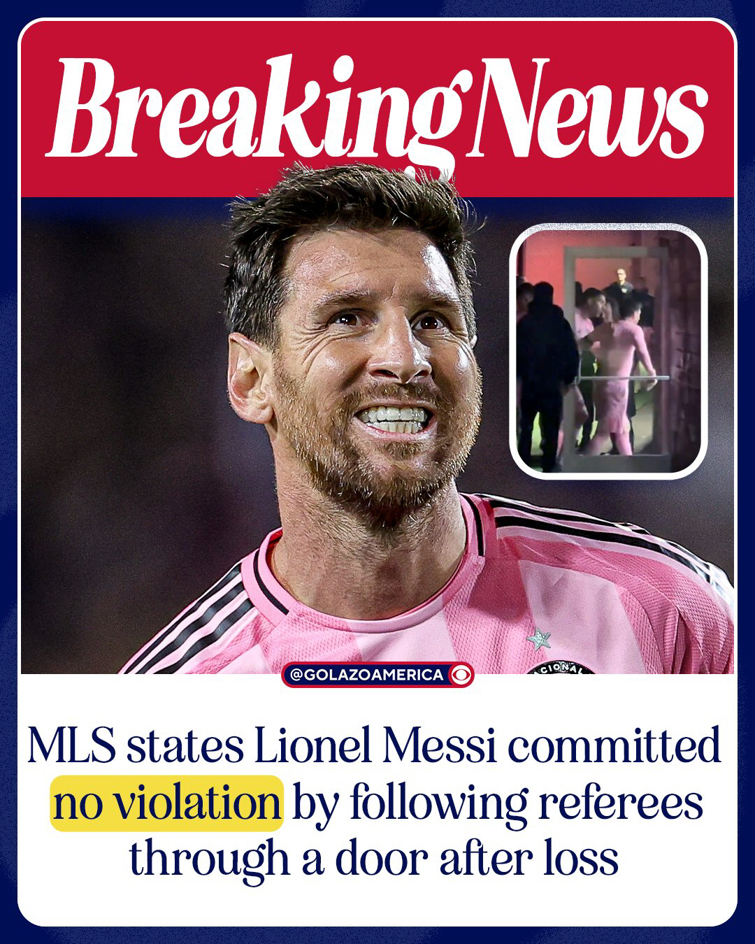 그러나 MLS 사무국은 해당 영상 속 문은 심판 탈의실로 향하는 문이 아니었으며, 메시 역시 제한 구역에 들어가지 않았다고 설명했다. 사무국의 검토 결과 메시는 어떤 규정 위반도 하지 않았고, 이에 따라 해당 사안은 사실상 종결됐다고 한다.