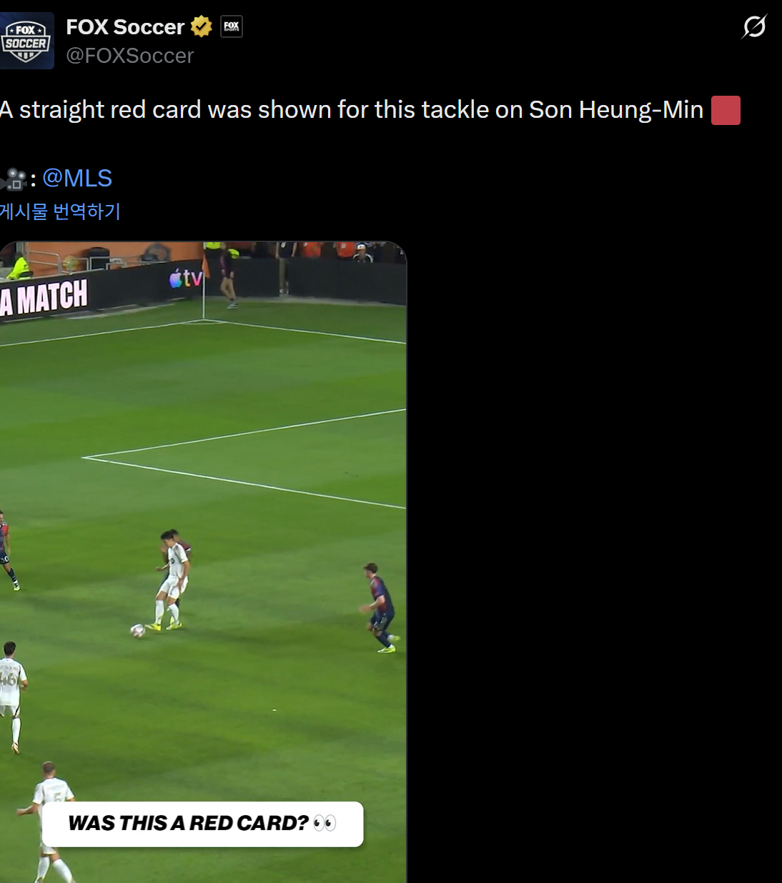 하지만 경기 후 미국 폭스 스포츠는 카를로스가 손흥민의 발을 밟아서 퇴장을 당했던 영상을 올리면서 팬들에게 '이게 정말 퇴장인가요?'라고 올렸다. 미국 팬들의 반응은 꽤나 충격적이었다.