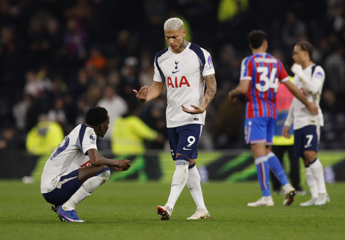 토트넘은 6일(한국시각) 영국 런던 토트넘 홋스퍼 스타디움에서 벌어진 크리스털 팰리스와의 2025~2026시즌 잉글랜드 프리미어리그 29라운드 홈 경기서 1대3 역전패를 당했다. 토트넘은 최근 리그 5연패를 당했다. 올해 들어 단 한번도 승리하지 못했다. 임시 감독 이고르 투도르는 부임 이후 3경기(아스널-풀럼-크리스털) 연속으로 졌다. 토트넘은 승점 획득에 실패, 승점 29점에 머물러 리그 16위를 기록했다. 토트넘과 강등권의 승점차는 단 1점. 17위는 노팅엄(승점 28), 강등권 시작 18위는 웨스트햄(승점 28)이다.