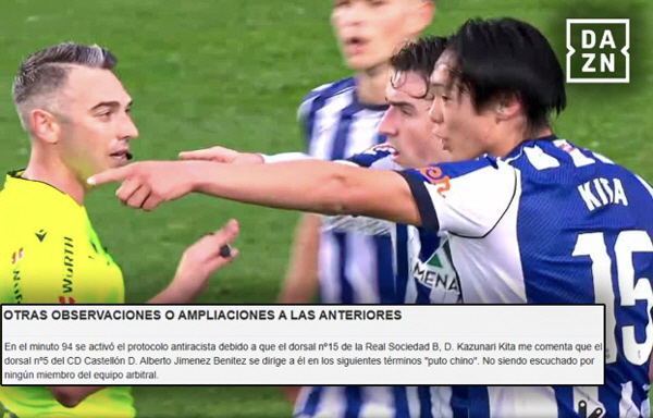스페인 일간 '아스' '마르카' 등 복수 매체는 이날 경기 막바지에 소시에다드 센터백 키타 카즈나리(20)가 인종차별적 폭언을 당했다고 보도했다.