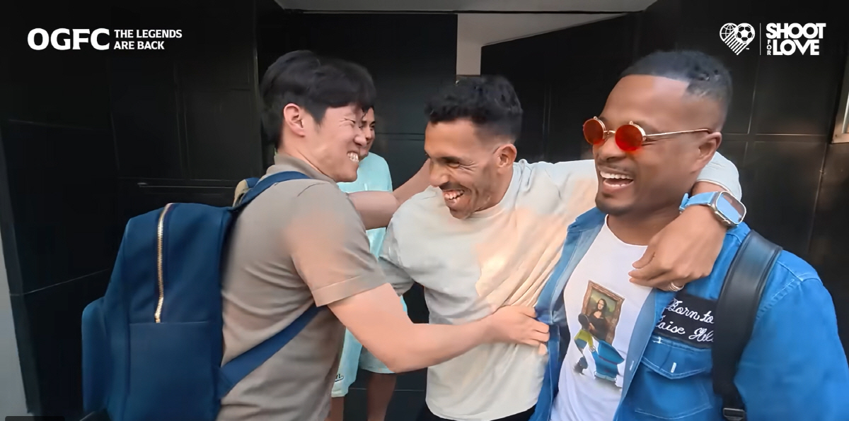 유튜브 슛포러브는 11일 채널을 통해서 축구 레전드인 박지성, 에브라, 테베스가 만난 영상을 올렸다. 축구 콘텐츠·이벤트 제작사이기도 한 슛포러브는 지난 6일 박지성, 리오 퍼디낸드 등 왕년의 세계적 축구 스타들이 꾸린 레전드 팀 OGFC가 다음달 19일 수원월드컵경기장에서 수원 레전드 팀을 상대한다고 6일 밝힌 바 있다. 슛포러브와 박지성은 OGFC에 참가할 수 있는 전설적인 선수들을 만나서 섭외하고 있는 중이다.