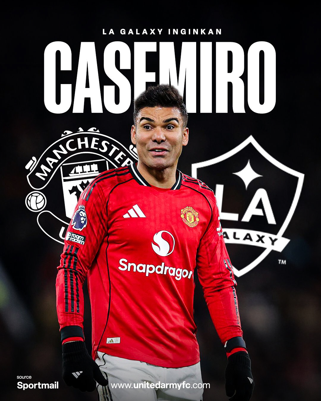 [스포츠조선 강우진 기자]맨체스터 유나이티드 팬들은 카세미루가 2025~2026시즌이 끝난 뒤에도 팀에 남기를 바라고 있다. 그는 손흥민이 뛰고 있는 미국 메이저리그사커(MLS)로 이적할 가능성이 큰 상태다.