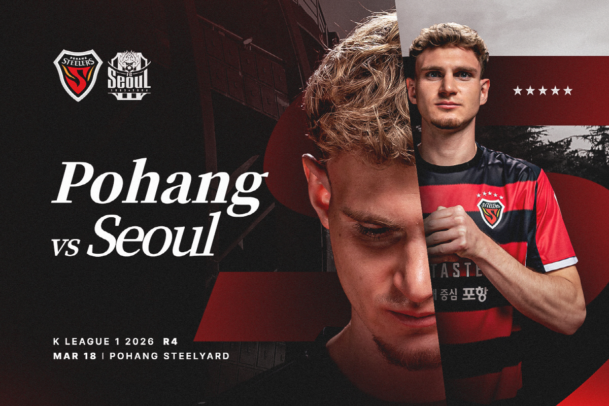 포항스틸러스는 오는 18일 오후 7시 30분 포항스틸야드에서 FC서울과 하나은행 K리그1 2026 4라운드 맞대결을 펼친다. 지난 15일 열린 홈 개막전에서 포항은 1대1 무승부를 기록했다. 후반 시작과 동시에 터진 이호재의 동점골로 승점 1점을 챙겼다. 첫 승의 아쉬움을 뒤로한 포항은 서울을 상대로 홈에서 시즌 첫 승을 노린다. 3일 만에 다시 열리는 홈경기인 만큼 반드시 승리를 가져오겠다는 각오다.