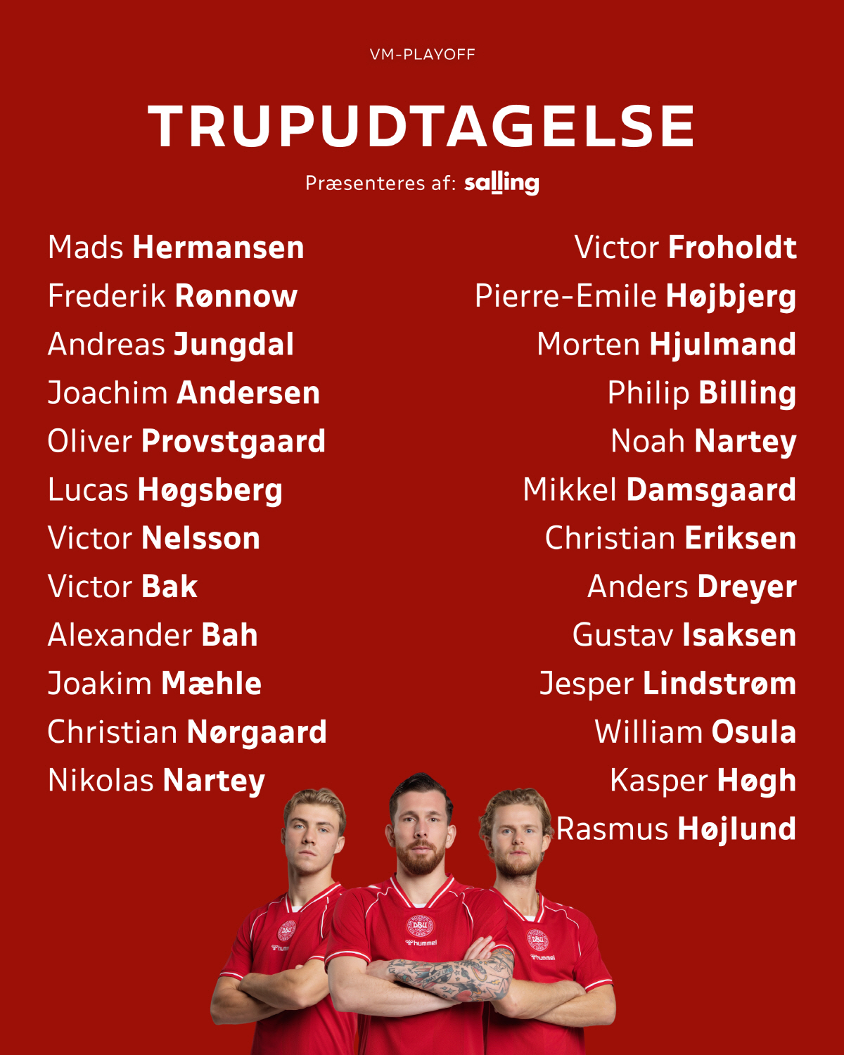 덴마크축구협회는 17일(한국시각) 공식 홈페이지를 통해 3월 유럽축구연맹(UEFA) 월드컵 플레이오프 명단을 공식 발표했다.