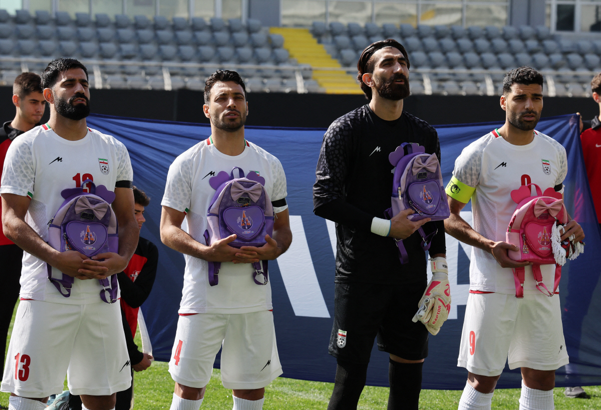 이란 선수단은 경기 전 초등학교 미사일 공격 희생자를 추모하기 위해 핑크, 보라색 가방을 손에 들고 등장해 눈길을 끌었다. 국가가 연주되는 동안 가방은 선수들 발 앞에 가지런히 놓여있었다. 이란 선수들은 검은색 완장도 찼다.