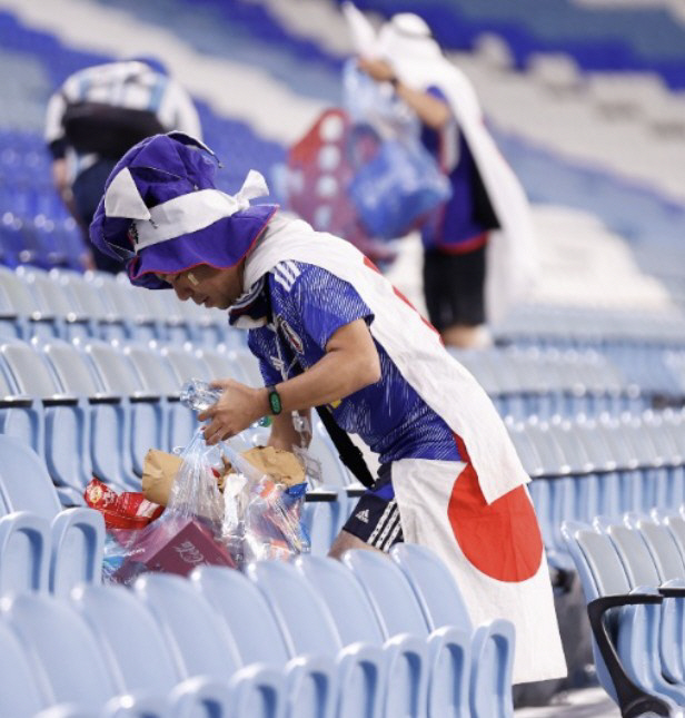 일본의 풋볼존은 1일 '잉글랜드와의 경기 후 일본 팬들이 자리를 청소했다'고 보도했다.