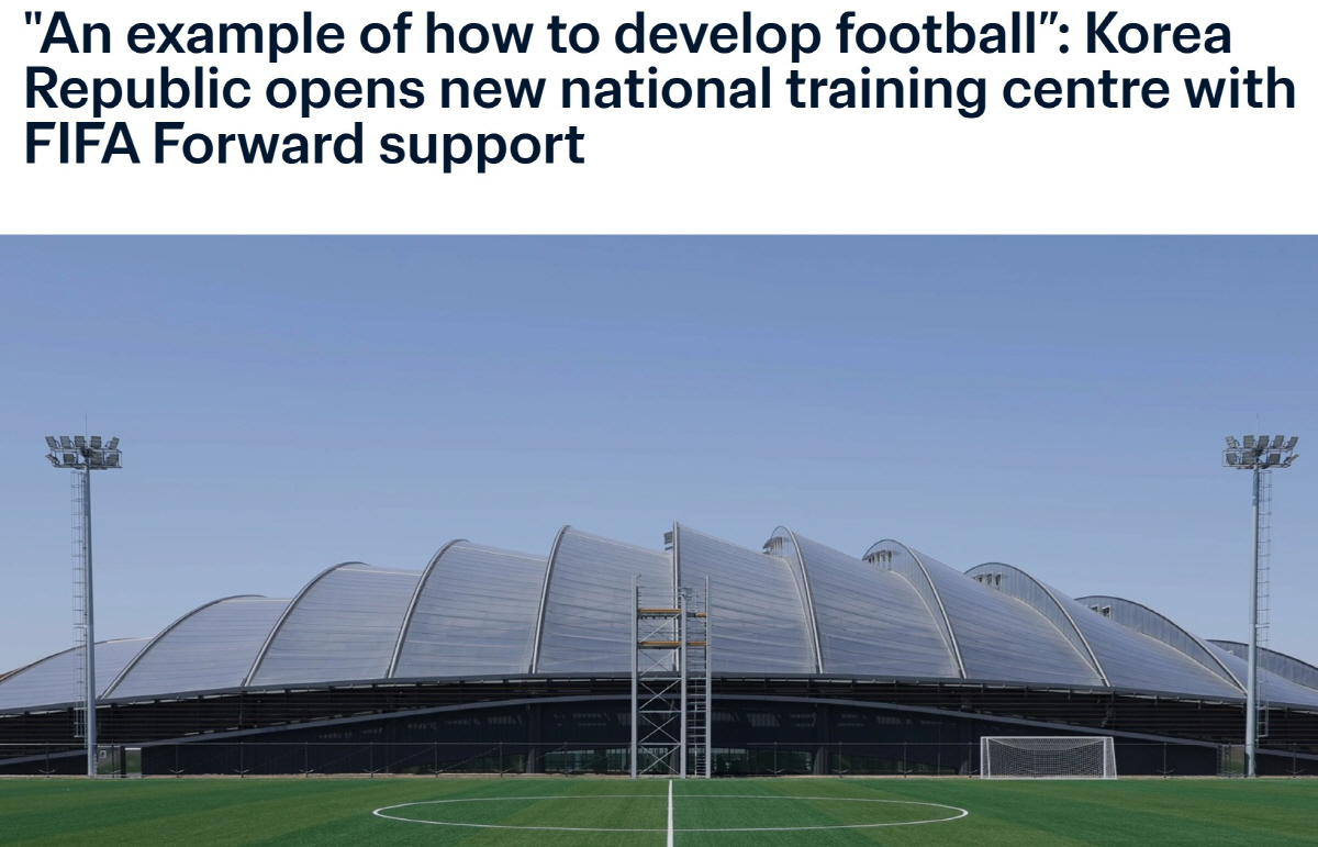 FIFA는 8일 '인사이드 FIFA'를 통해 '축구 발전의 모범 사례'라며 코리아풋볼파크를 집중 조명했다. FIFA는 'KFA는 FIFA 포워드 프로그램의 지원을 받아 건립한 새로운 국가대표 훈련센터를 개관했다. 이 센터는 엘리트 선수 육성, 유소년 개발, 그리고 지역 축구의 지속적인 성장을 위한 새로운 중심지 역할을 할 것'이라며 '코리아풋볼파크는 엘리트 선수들에게 최상의 훈련 환경을 제공, 한국 국가대표팀의 경쟁력 강화를 목표로 한다. 또 최고 수준의 교육 시설을 제공하여 유소년 선수, 코치, 심판 육성에 기여하고, 클럽과 일반 대중에게 최고 수준의 인프라를 제공할 예정'이라고 강조했다.