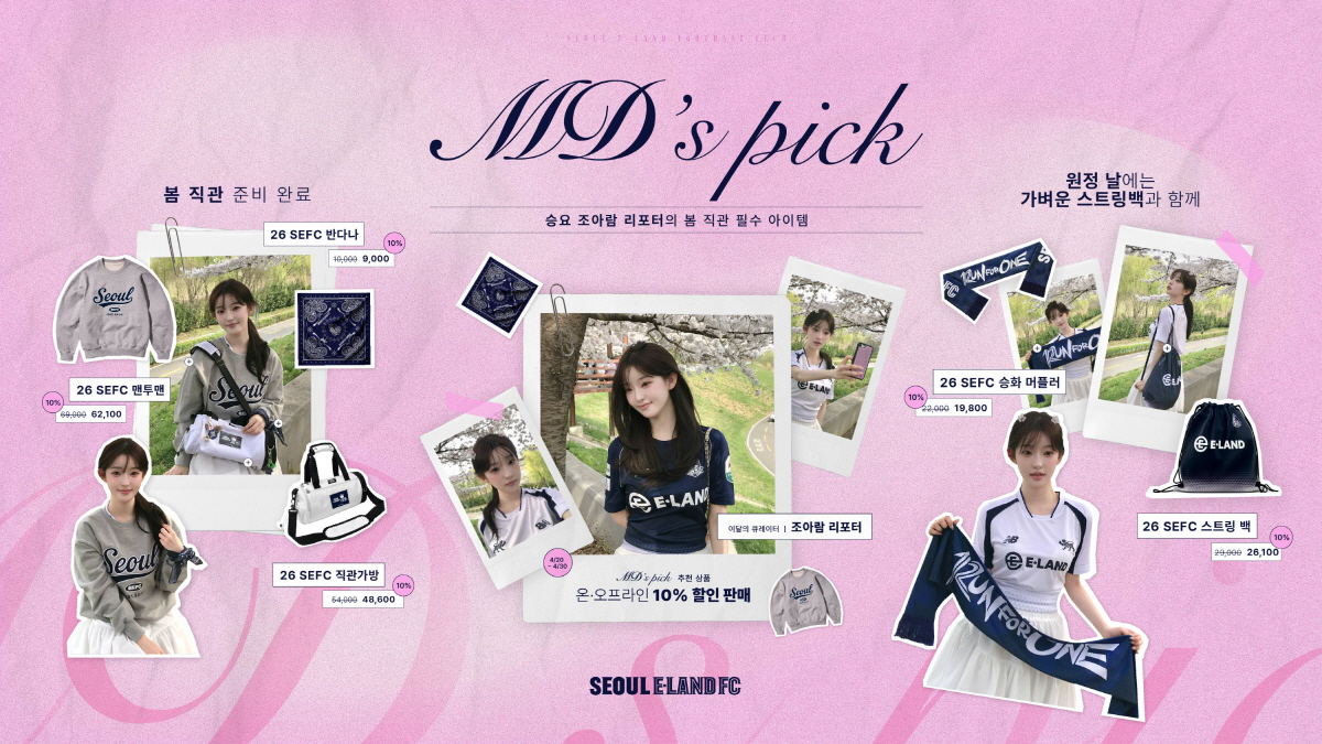 서울 이랜드 관계자는 "MD'S Pick은 팬들의 직관 경험을 더욱 즐겁게 만들고 구단 굿즈를 보다 쉽고 친근하게 접할 수 있도록 기획한 콘텐츠"라며 "앞으로도 시즌과 라이프스타일에 맞는 다양한 상품 제안을 통해 팬분들의 굿즈 경험을 넓혀가겠다"고 밝혔다.