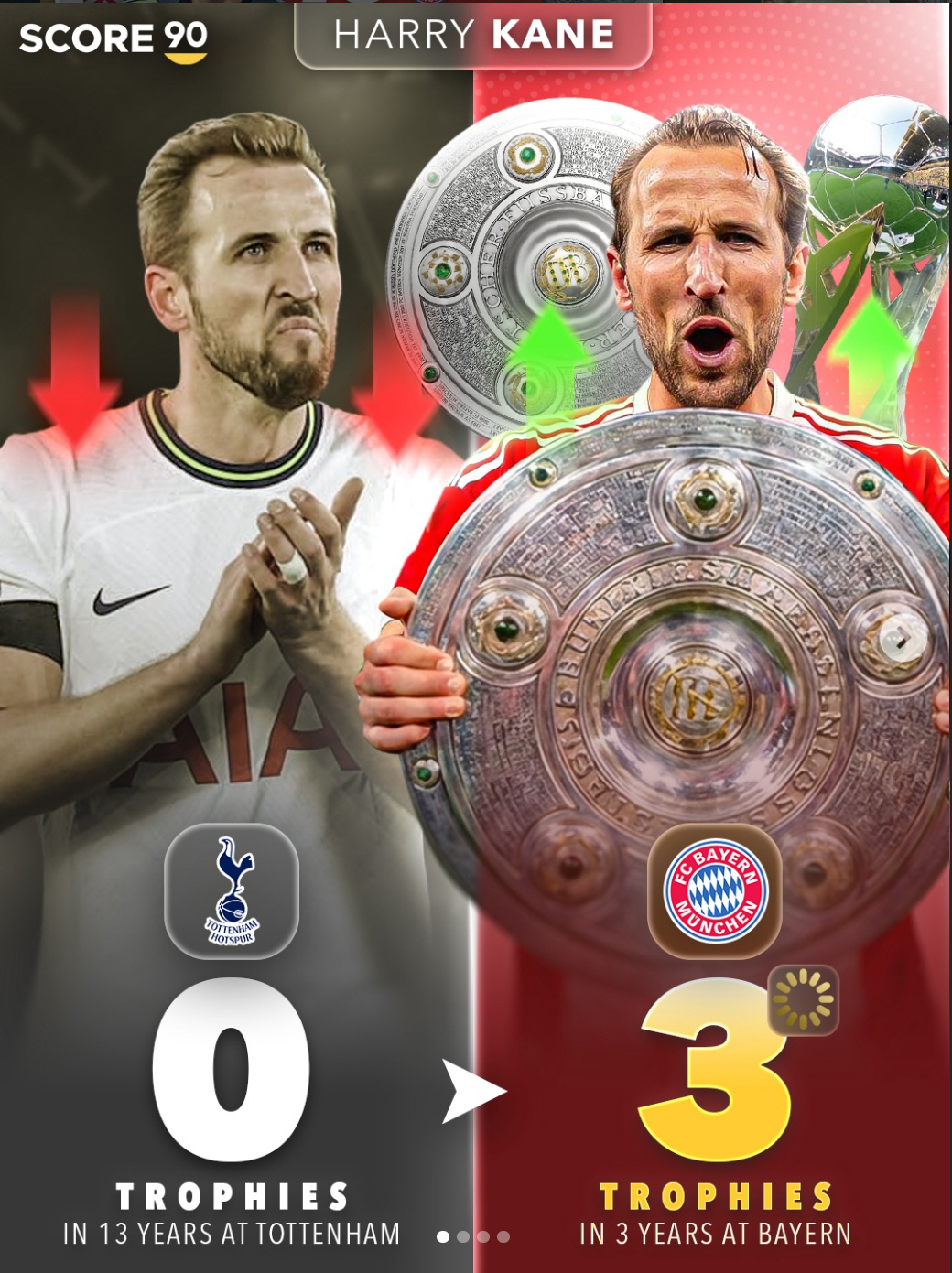 축구 콘텐츠 매체 SCORE90는 20일(이하 한국시각) '토트넘을 떠나는 것이 우승 트로피를 얻기 위한 전부일 때가 있다'며 '케인은 바이에른 뮌헨 소속으로 세 번째 트로피를 들어 올릴 수 있다. 뮌헨이 이번 경기에서 분데스리가 우승 확정을 지을 기회를 잡았기 때문'이라며 케인의 탈트넘 효과를 조명했다.