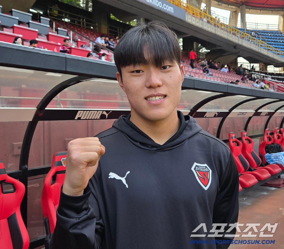 뛰어난 유스 시스템은 포항을 지탱하는 저력이다. 2025년부터 반복되는 부상과 퇴장 변수 속, 공백을 책임진 어린 선수들의 힘이 상승세 과정에서 주효했다. 그중 2026년 최고의 '히트상품'을 예고한 유망주는 김호진이다. 포항제철고 출신으로 용인대를 거쳐 올해 포항에 새롭게 합류한 신인이다. 수비형 미드필더와 센터백을 소화하는 멀티 재능이 돋보인다. 대전하나시티즌과의 6라운드에서 깜짝 선발로 발탁, 센터백으로 나섰다. 기대에 부응하며 팀의 1대0 무실점 승리에 일조했다. 김호진은 데뷔전을 회상하며 "아직도 긴장이 좀 된다"며 "몸이 좋았고, 빨리 경기를 뛰고 싶다는 생각이 더 컸다"고 밝혔다.