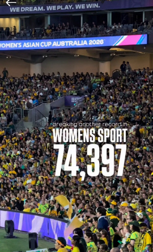 이날 결승전에는 '7만4397명' 여자 아시안컵 사상 최다 관중이 입장했다. 지난 8일 같은 장소에서 열린 조별리그 A조 최종전 한국-호주전(1대1무) 당시 6만279명, 대회 역대 단일 경기 최다 관중 신기록을 수립했고, 이날 이 기록이 경신됐다. 스포츠 선진국에서 여자축구 현장이 얼마나 눈부시게 발전하고 있는지를 숫자로 입증했다.