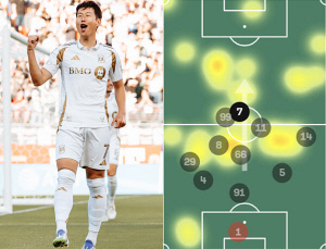 "웃어야돼, 말아야돼?" '2호골' 손흥민의 충격 히트맵 공개…LA 졸전에 '미드필더'처럼 뛰었다