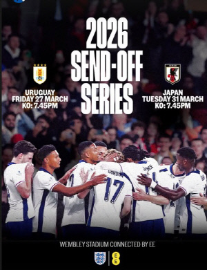 내년 3월 '축구종가' 잉글랜드와의 친선경기 일정이 확정됐다. 영국의 'BBC'는 10일(이하 현지시각) '잉글랜드는 내년 3월 웸블리에서 우루과이, 일본을 상대로 평가전을 치른다. 두 경기는 토마스 투헬 잉글랜드대표팀 감독이 2026년 월드컵 최종엔트리를 확정하기 전 마지막 경기가 될 것'이라고 보도했다.